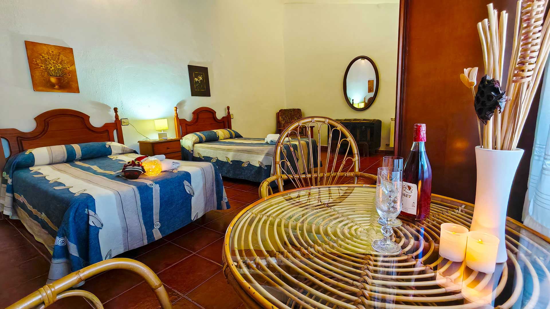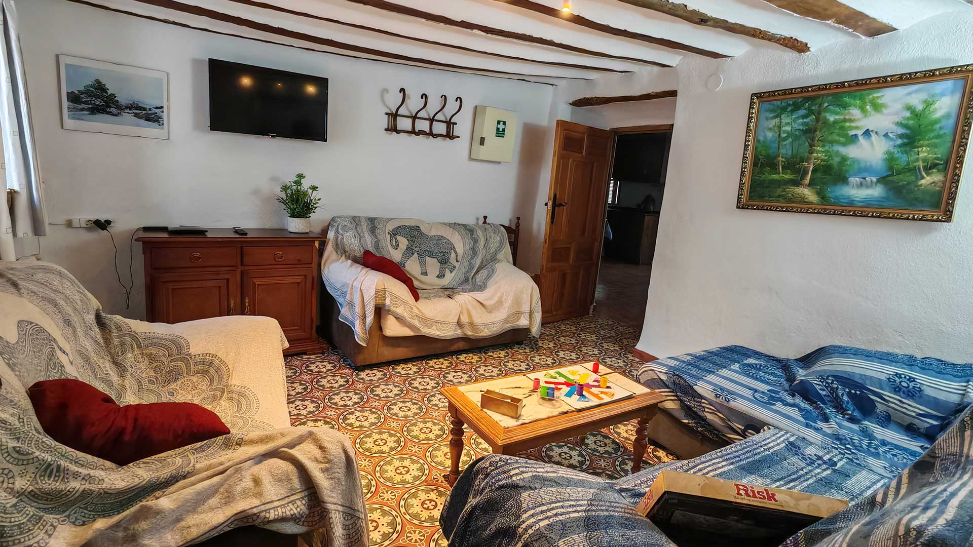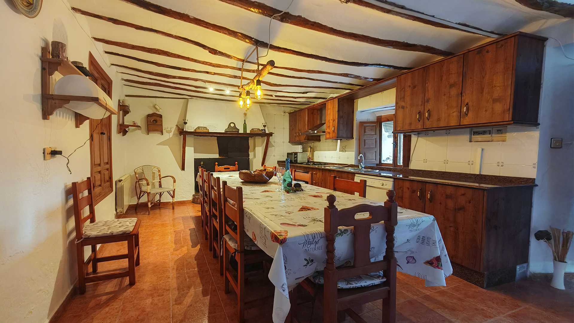 En esta parte del cortijo disponemos de una cocina completamente equipada con capacidad para mas de 20 personas donde el grupo puede cocinar y comer reunido en un mismo espacio. El ambiente combina el carácter tradicional de la chimenea con todas las comodidades actuales: frigorífico y congelador de gran capacidad, lavavajillas, horno eléctrico, microondas, tostadora, batidora, etc y menaje completo para todos los huéspedes. Un espacio pensado para disfrutar de la convivencia y la gastronomía.